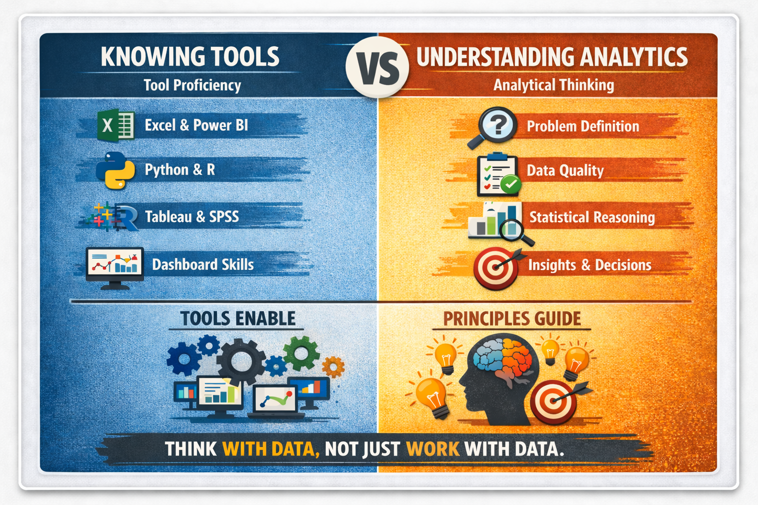 Professionals who focus exclusively on tools often face limitations. They may produce attractive dashboards that decision-makers do not trust or use. They may struggle when data is messy, incomplete, or ambiguous. They may also find it difficult to adapt when organizations change systems or adopt new technologies.